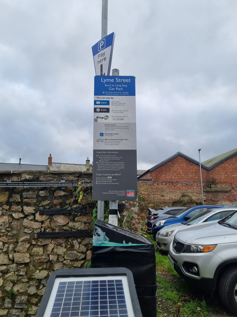 - Lyme Street Car Park has a post code of EX13 5AD